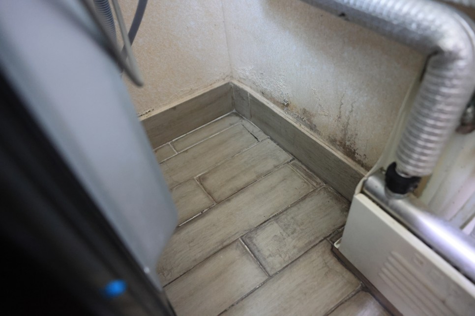 거짓말 아니고 진짜 베란다에 습기가 가득했고 타일에 곰팡이며 박테리아가 가득했다.
