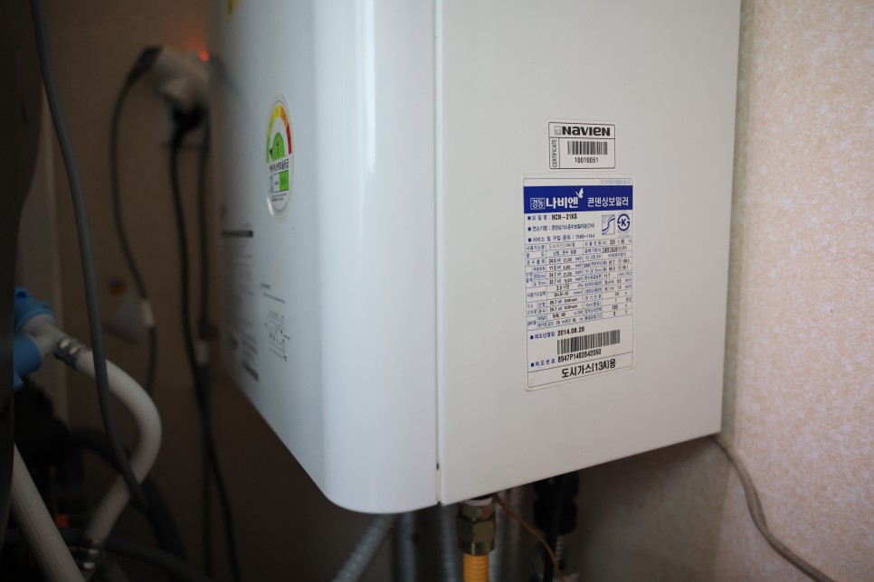 콘덴싱 보일러는 열 효율을 높이기 위해서 뜨거워진 배기가스를 한번 더 냉수 파이프 쪽으로 돌려서 사용하는데 이렇게 하면