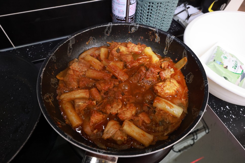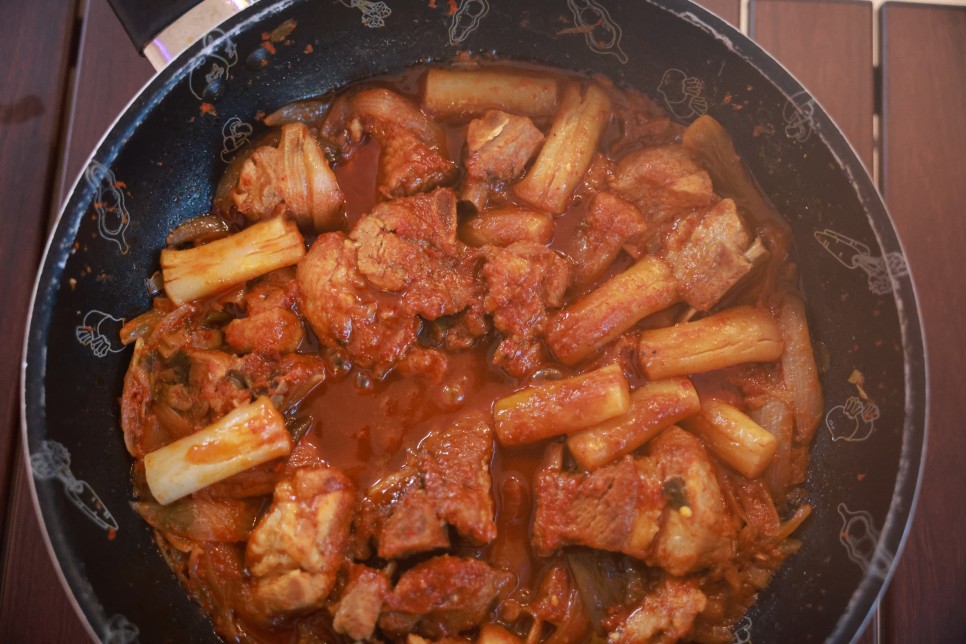 레시피에는 없지만 떡을 넣고서 10분을 더 졸여주었다.