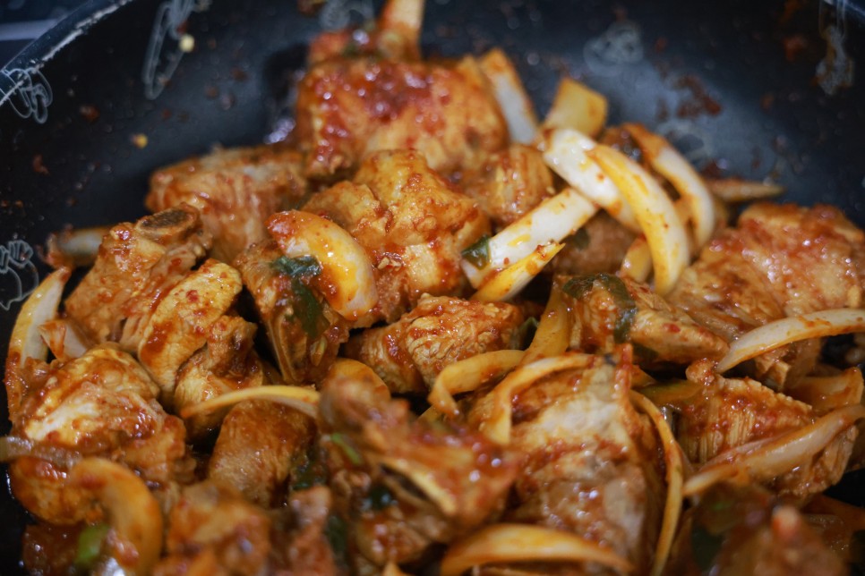 → 강불로 3분 지지고 볶아 양파 숨이 죽을 때 까지